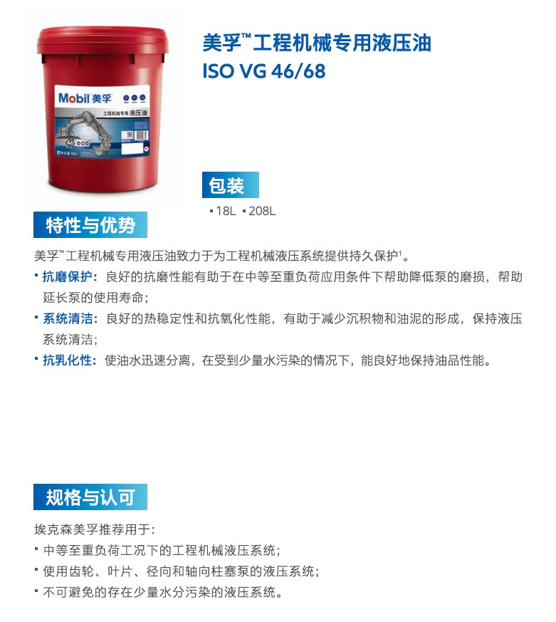 美孚黑霸王™工程机械专用液压油ISO VG 46